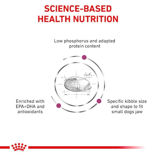 Pełnoporcjowa dietetyczna karma dla psów, wspomagająca funkcję nerek w przypadku ich przewlekłej niewydolności, dzięki ograniczonemu poziomowi fosforu oraz zastosowaniu białek o wysokiej jakości.