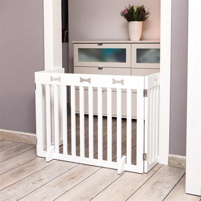 Dit Trixie Dog Barrier hondenhek in wit van 124x61 cm sluit ruimten of de trap af voor je hond.