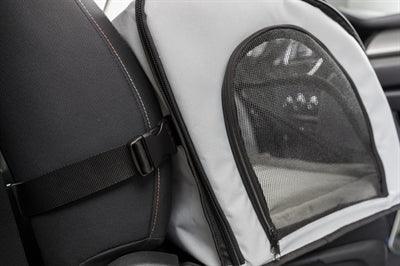 • Securely attachable: With seat belts and a cutout for a dog harness.