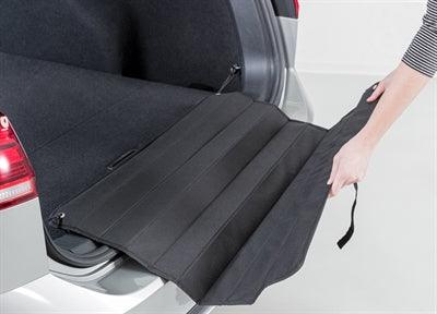 The mat is easily attached to the load hooks in your trunk using elastic bands and carabiners , ensuring it stays securely in place. When not in use, the bumper protection can be easily folded up and secured with Velcro for compact and space-saving storage.