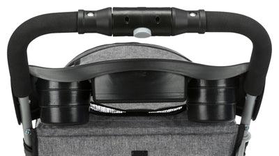 - Optimale veiligheid – Met twee parkeerremmen en twee geïntegreerde korthouders om te voorkomen dat je hond onverwachts uit de buggy springt.