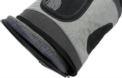 De Timon rugtas is ontworpen voor optimaal comfort. De binnenkant is voorzien van een zachte voering met een schapenvacht-look en een uitneembare bekleding, waardoor je hond lekker zacht zit of ligt. Dankzij de verstelbare taille- en schouderbanden en de anatomisch gevormde schouderriemen sluit de tas goed aan op je lichaam en wordt het gewicht optimaal verdeeld – zelfs tijdens langere tochten. De tas is te openen aan de boven- en voorkant en heeft meerdere gaas-inzetstukken voor voldoende luchtcirculatie en uitzicht. Reflecterende details zorgen ervoor dat jij en je hond ook in het donker goed zichtbaar zijn. De geïntegreerde korthouder voorkomt ontsnappingen tijdens het dragen.