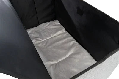 The Trixie Kimy Light Grey Cat House (72 x 40 x 40 cm) is a fun, relaxing indoor house for cats and small dogs, complete with a cushion and storage compartment. The ideal private space for your pet! This cute relax igloo is a rectangular house with an entrance on one side. It's made of woven fabric with a fun silhouette of a dog on the side. The igloo's roof is removable, revealing a storage compartment underneath – perfect for storing your pet's favorite toys. You can also remove the compartment (attached with Velcro) for extra access to your cat or dog from above. The house comes with a wonderfully comfortable, reversible cushion with plush covering. The cushion is machine washable at 40 degrees Celsius.