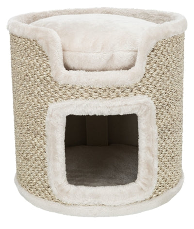 The Trixie Ria Cat Tree in Light Grey/Natural (37x37x37 cm) is a round cat tree with sisal scratching surfaces, a hideaway, a cushion, and padded platforms. A wonderful personal space for your cat doesn't have to take up too much space, as this lovely Trixie cat tree proves. The Ria cat tree is a compact cat tree with two levels. The platforms are padded for extra comfort, and the included reversible cushion ensures your cat can dream away in luxurious softness. The hideaway at the bottom is covered in soft plush and fleece, and the outside of the tree is covered in sisal to provide your cat with plenty of scratching opportunities. Scratching is a natural instinct for cats, so always provide enough opportunities to prevent your cat from scratching your furniture!