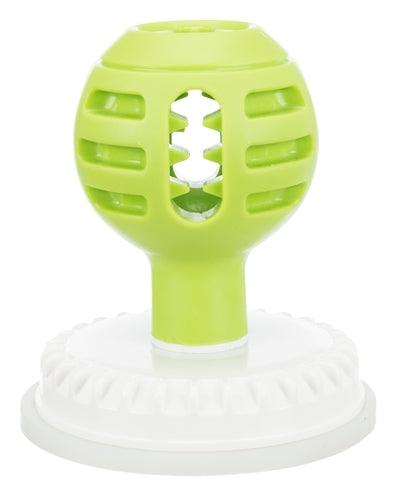 The Trixie Lick 'n' Snack Ball is an interactive lick and snack toy, specially designed to keep your dog occupied in a calming and soothing way. Licking is a natural instinct that helps dogs relax, and this snack ball combines this with a rewarding experience. The ball is attached to a sturdy stand made of TPR and plastic, which is equipped with a suction cup, so the toy stays securely in place on smooth surfaces such as tiles or laminate.