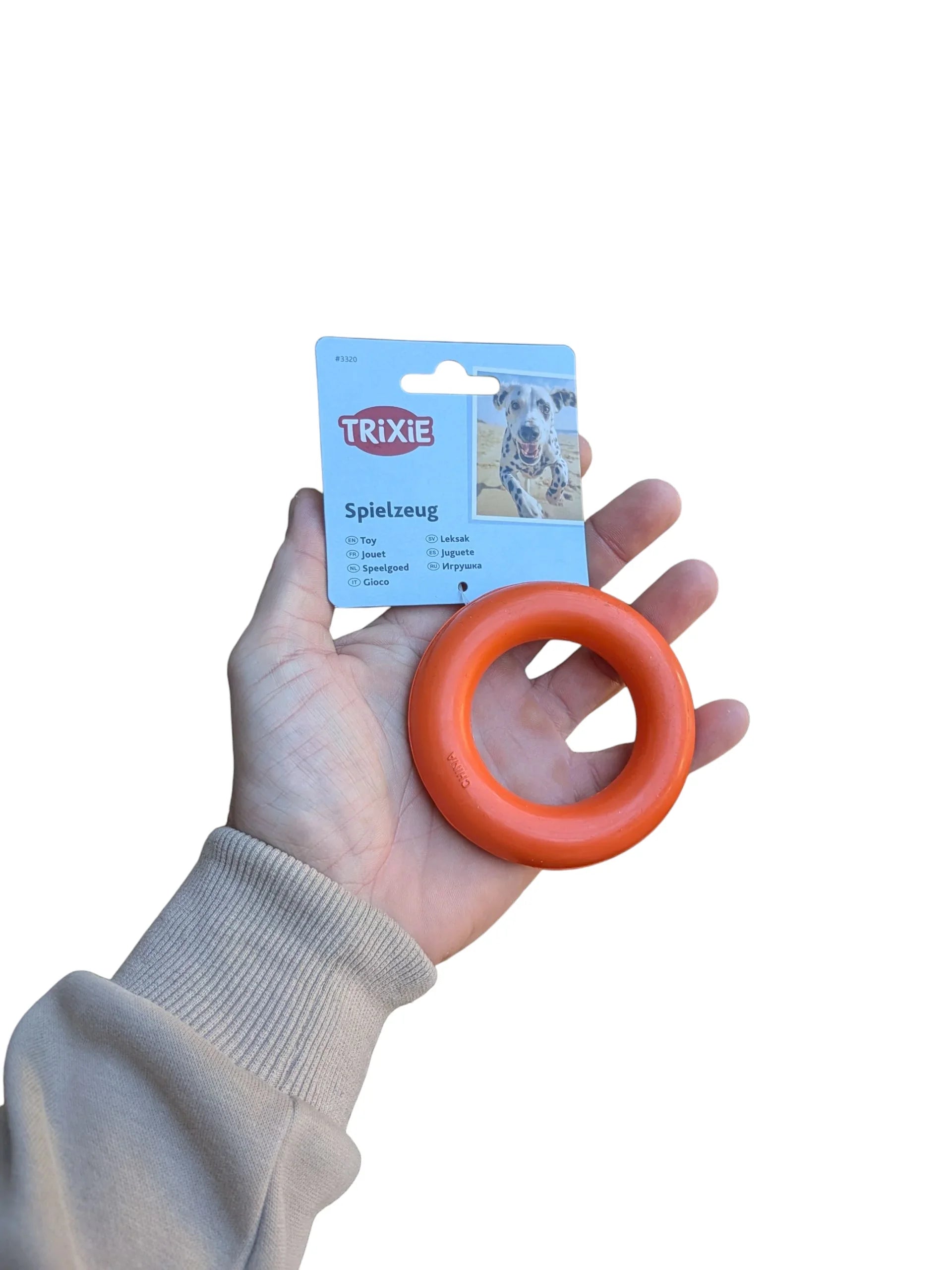 The Trixie Natural Rubber Ring is a sturdy and flexible dog toy, perfect for fetching, chewing, and interactive play. Made from natural rubber, this ring is safe for your dog's teeth and gums. Its robust yet soft material makes it an ideal toy for both indoor and outdoor use.