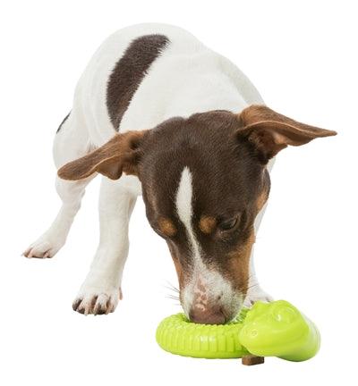 The narrow opening allows you to use not only dry kibble or treats, but also pastes such as liverwurst or pâté. This keeps your dog busy with the toy for a long time and stimulates his natural sniffing and licking instincts. Ideal for mentally challenging your dog, even when you're not around!