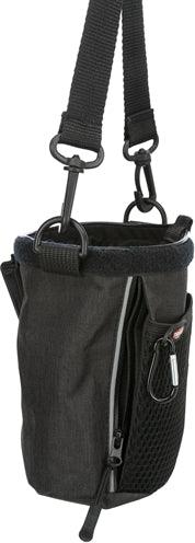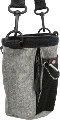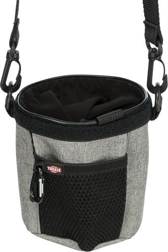 The Trixie Snack Bag Multi Twist Assorti 17x12 cm is a multifunctional snack bag for dogs, with an adjustable twist closure, poop bag holder, and carabiner hook, and is waterproof. This handy snack bag is perfect for all occasions! Of course, this handy bag offers plenty of space for the reward snacks you want to take with you on walks for your dog. The handy twist-off closure is ideal. By twisting the fabric tighter or looser, you regulate access to the contents. The closure can be completely closed when you don't need to access snacks and also protects against rain. In addition, this handy bag has an integrated poop bag dispenser, so you always have your poop bags at hand without having to carry an extra holder. You can attach a dog whistle or clicker to the carabiner hook, and store loose items you take with you on walks in the outer pockets. With reflective outer pockets that make the bag highly visible! Includes a continuously adjustable strap.