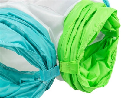 The shape-retaining spiral spring ensures stability. The compact design is easy to store when not in use. The tunnel is made of a sturdy polyester with a nylon look. It is possible to connect multiple tunnels together.