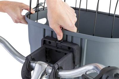The bicycle basket is easily removable thanks to the quick-release clasp. This allows you to quickly take the basket inside or detach it when you park your bike. The basket is suitable for mounting on the handlebars with a universal handlebar mount (not included).