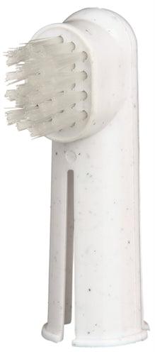 Slide the finger toothbrush onto your finger and brush your dog's teeth.
