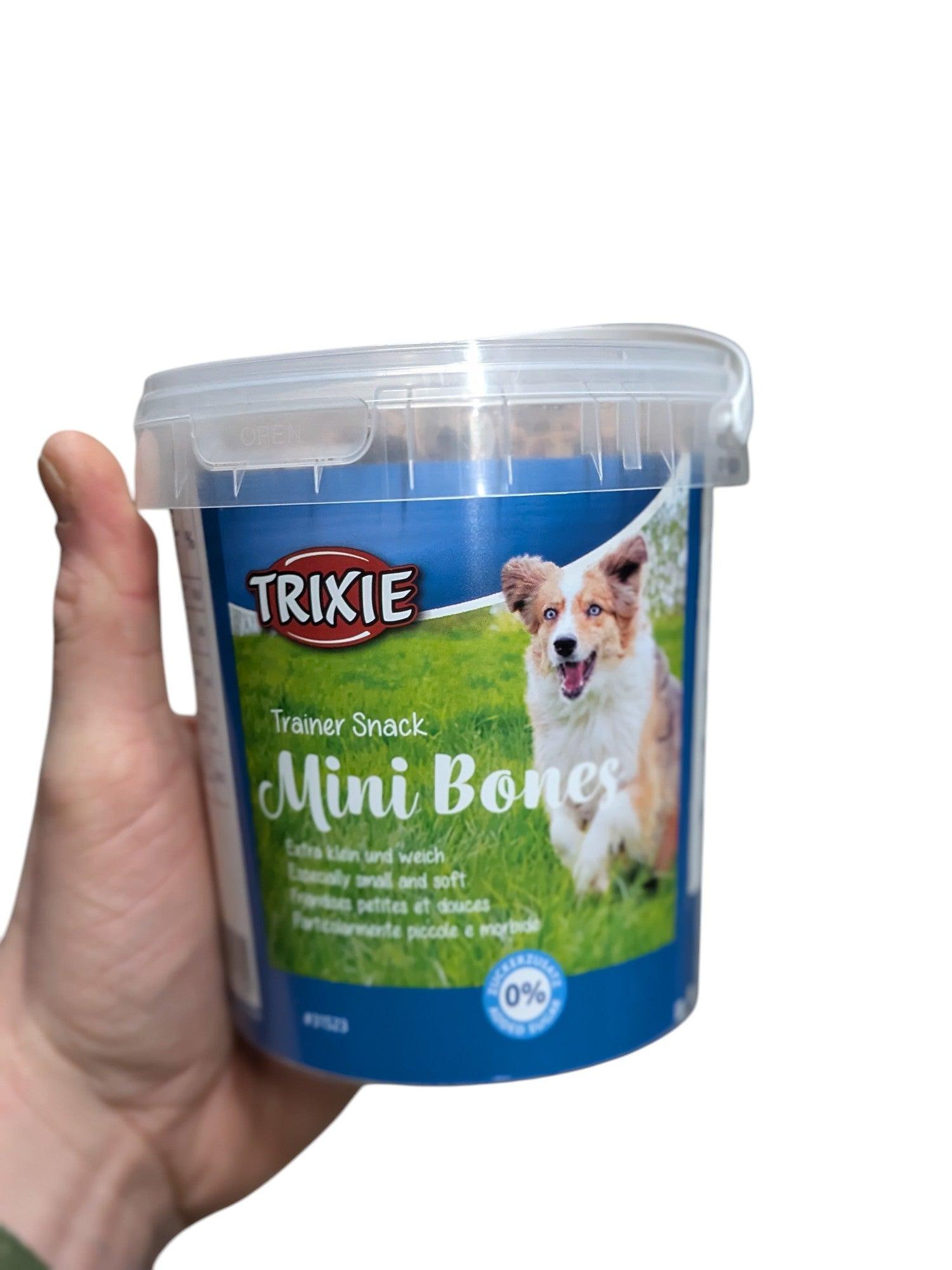 Trixie Trainer Snack Mini Bones 500g are supplementary pet food in the form of tasty reward treats for dogs, with poultry, lamb and beef, ideal for training and courses. The tasty treats are shaped like bones in different colours and flavours: beef, lamb and poultry. They are extra small and soft, making them ideal for use during courses and training. The treats come in a handy, resealable plastic bag.