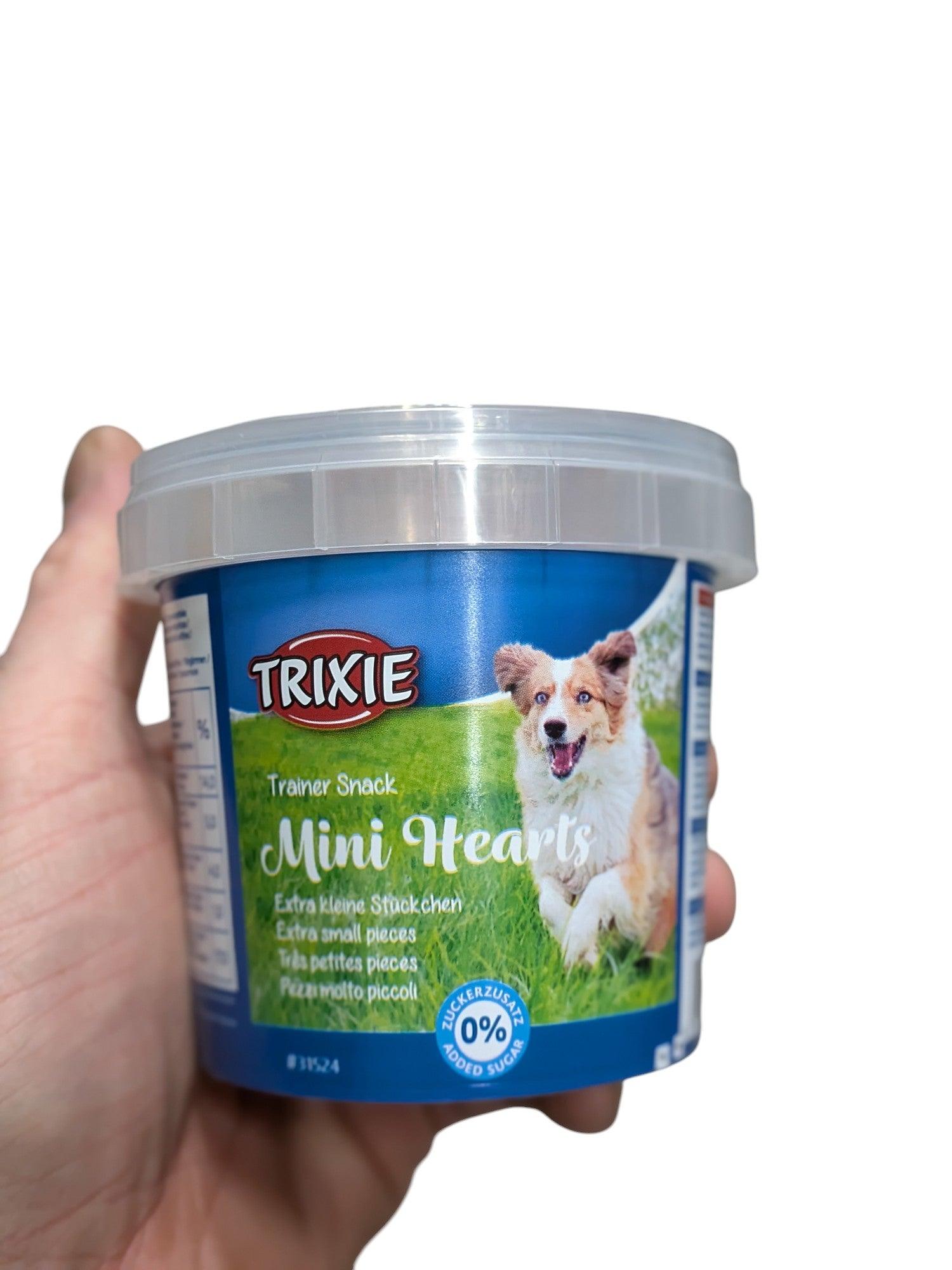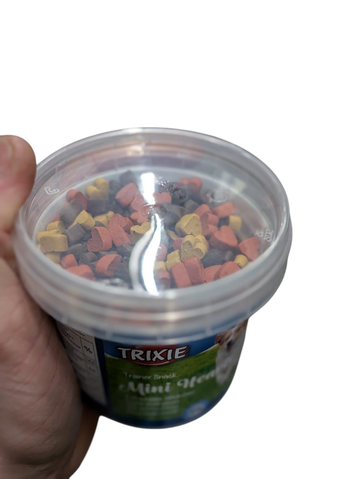 Trixie Trainer Snack Mini Hearts 200 grams are supplementary pet food in the form of tasty reward treats for dogs, with chicken, lamb and salmon flavors, ideal for training and courses. The tasty treats are heart-shaped and come in different colors and flavors: chicken, lamb, and salmon. They are extra small and soft, making them ideal for use during courses and training. The treats are supplied in a handy, resealable plastic bag.