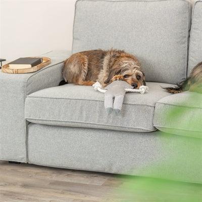 The Trixie Raccoon Plush/Fabric toy is a versatile dog toy that combines cuddling and active play. The combination of soft plush and sturdy fabric provides both comfort and durability. The integrated rope makes it ideal for tug-of-war games, while the built-in sound effect motivates your dog to play even more.