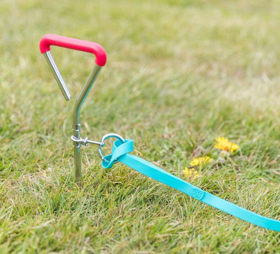 Metalowy, galwanizowany wkręt umożliwia łatwe i szybkie przywiązanie psa na smyczy, np. podczas spaceru.