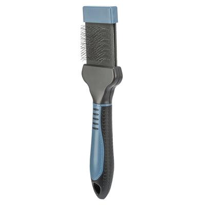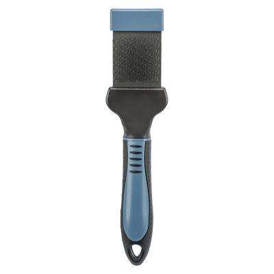 Fine, soft slicker brush with a flexible head for brushing the coat. Brushing removes most of the dead hairs from the coat.
