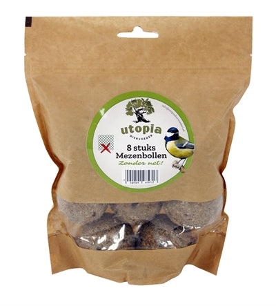 The Utopia Fat Balls Without Net (8 pieces) are supplementary food for garden birds, providing sufficient nutrients and without a net. Support the birds in your garden all year round in an environmentally friendly way! These tasty fat balls are ideal supplementary food to ensure that the birds in your garden have sufficient nutrients during every season. Due to cold winters and urbanization, it is becoming increasingly difficult for birds such as tits, sparrows, robins and other birds to find enough food. Hang these fat balls for the birds in your garden or offer them in a feeder or food bowl to ensure that the birds always have food available. These balls come without a net, so no plastic impact on the environment!
