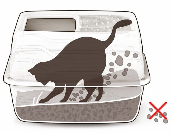 • Perforowany sufit również zapobiega rozsypywaniu żwiru - gdy kot wyjdzie z kuwety, żwir z łapek opadnie z powrotem do toalety.