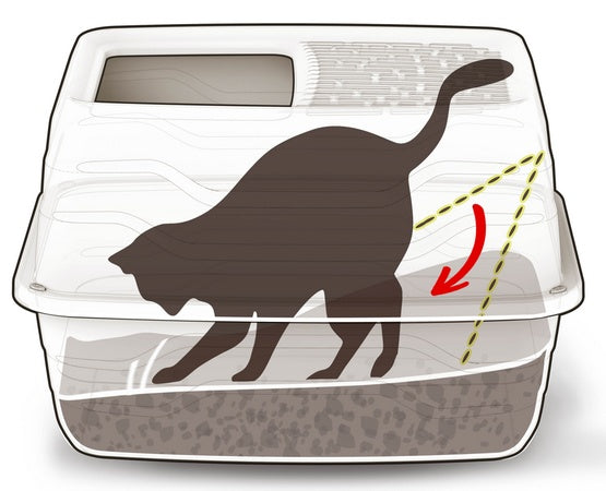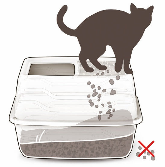 • Perforowany sufit również zapobiega rozsypywaniu żwiru - gdy kot wyjdzie z kuwety, żwir z łapek opadnie z powrotem do toalety.