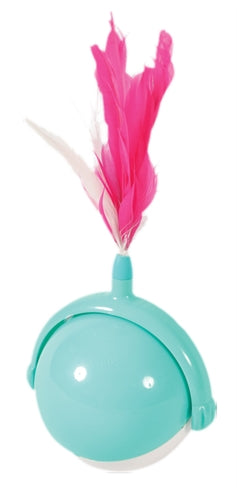 The Zolux Cat Player 1 Wobbler (11.5 x 9 x 24.5 cm) is a fun cat toy that moves in a challenging way and features a feather tail. This toy is ideal for cats who need to entertain themselves! By tapping the toy, the ball rolls across the room and the top of the wobbler wiggles back and forth, causing the feather tail to move attractively. The cat's hunting instinct is stimulated, and your pet will be entertained for hours chasing and catching the wobbler. No batteries required and available in trendy colors: white and mint green with pink feathers for a nice contrast!