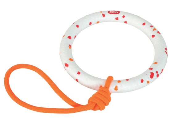 Pierścień ze sznurem marki ZOLUX to zabawka z serii nowoczesnych akcesoriów zaprojektowanych z myślą o psach, które uwielbiają gryzienie, aportowanie i interaktywną zabawę.