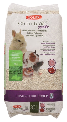This 30-liter Zolux Hemp Fiber Fresh Peony and Currant Scent bedding is a revolution in bedding! Hemp fiber is a 100% natural and biodegradable bedding material that is not only comfortable but also incredibly absorbent. This means the bedding is not only wonderfully soft on paws, but also prevents wet spots and unpleasant odors. The added pleasant scent ensures a fresh-smelling cage!