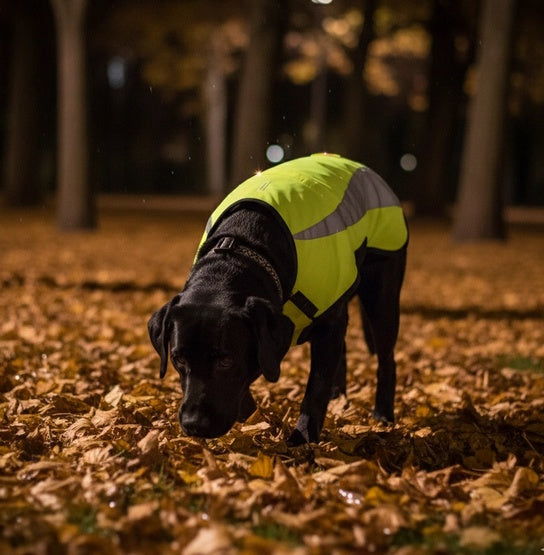 • Bezpieczeństwo: Kamizelka znacząco zwiększa bezpieczeństwo psa podczas spacerów po zmroku lub w trudnych warunkach pogodowych.