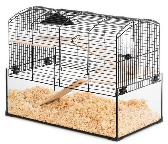 Klatka NEO Panas ZOLUX dla gryzoni została zaprojektowana z myślą o małych ssakach, głównie chomikach, myszach i myszoskoczkach. Posiada 2 piętra, na których obszarze zwierzę znajdzie odpowiednie miejsce do realizacji wszystkich swoich potrzeb, takich jak zabawa, żywienie czy toaleta. Dodatkowo szklana podstawa umożliwi właścicielom niezakłóconą obserwację jego poczynań. Wyposażona w duże otwarcie od góry klatka jest łatwa w utrzymaniu w czystości. Dodatkowe drzwiczki z przodu gwarantują bezpieczne wkładanie/wyjmowanie zwierzęcia. W zestawie dwa drewniane piętra i drabinki oraz plastikowy kołowrotek, domek i miseczka.
