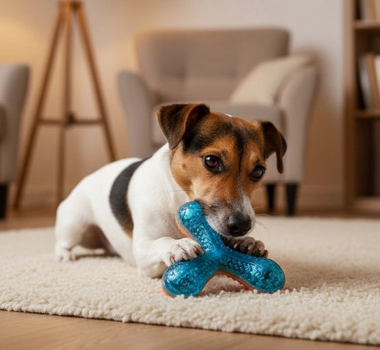• Stymulacja fizyczna i psychiczna dzięki wielofunkcyjności (aportowanie, zlizywanie przysmaków, gryzienie).